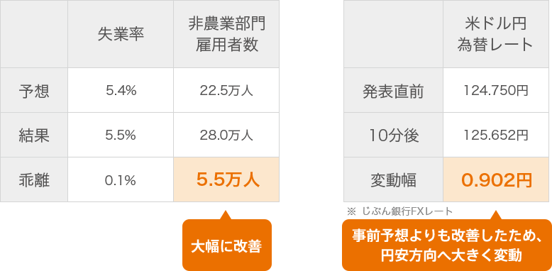 そのような取引の余力がある状態で今回の米国雇用統計が改善という結果になったことで、新たな米ドル買いを生み、円安ドル高に変動したと考えられます。