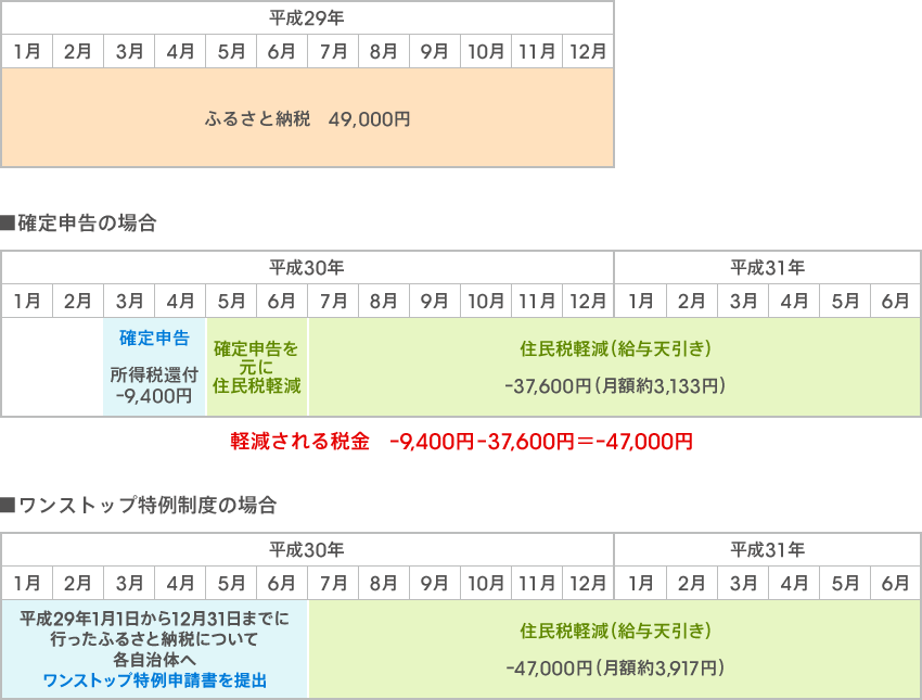なお、ワンストップ特例制度で申請を行った場合は、所得税からの控除は行われず、その分も含めた控除額の全額4万7,000円が、翌年度の住民税から控除されます。
