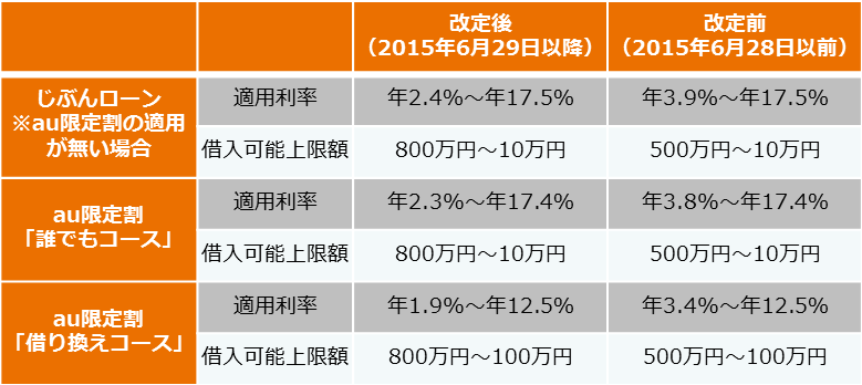 なお、auの各種ネットワークサービス(以下「au」)をご利用のお客さまを対象として、カードローンご利用時の金利を通常金利より最大年0.5%優遇する「カードローンau限定割」※1につきましては、引続き特典を提供してまいります。