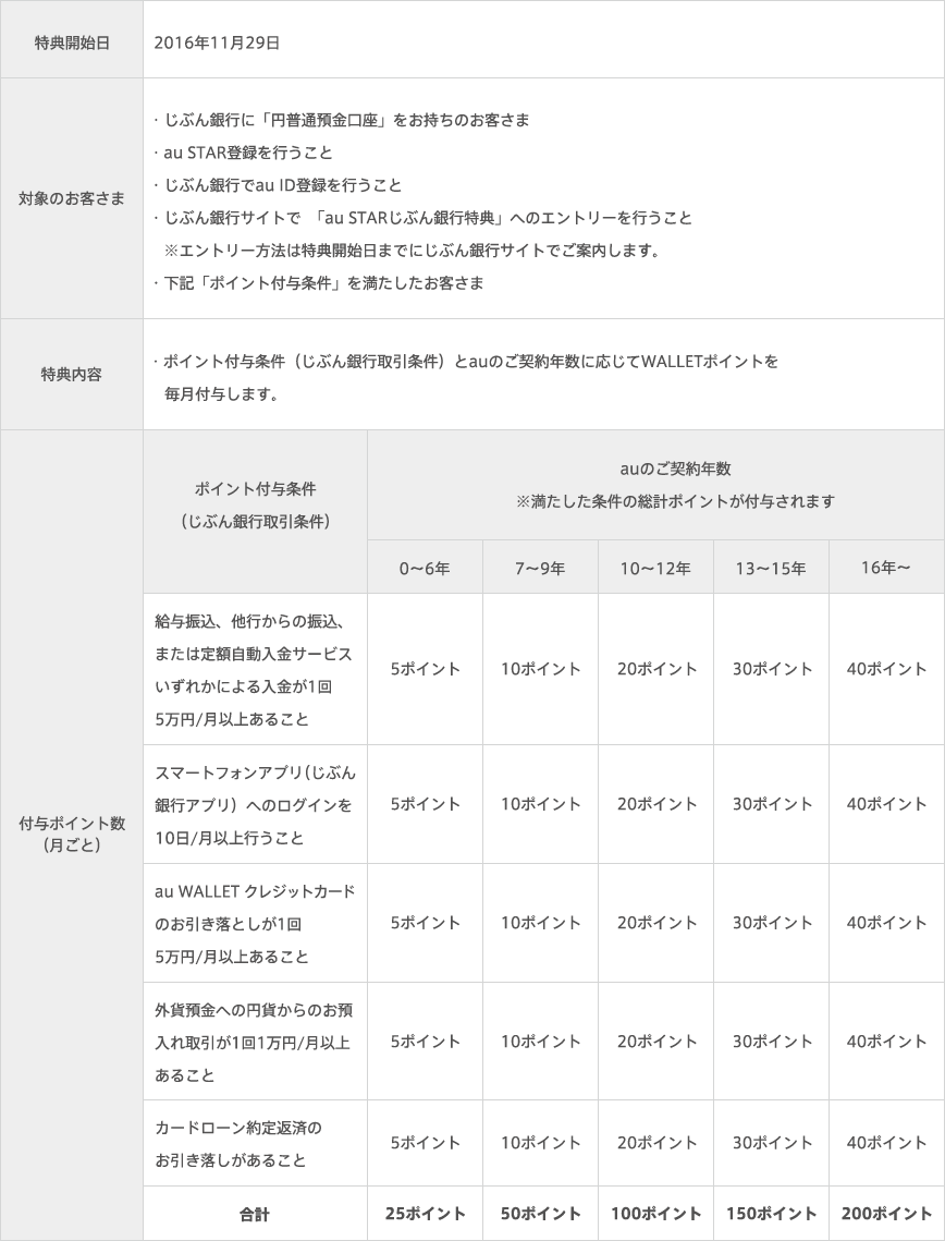 株式会社じぶん銀行(本社:東京都中央区、代表取締役社長:鶴我 明憲、以下「じぶん銀行」)、KDDI株式会社(本社:東京都千代田区、代表取締役社長:田中 孝司、以下「KDDI」)、沖縄セルラー電話株式会社(本社:沖縄県那覇市、代表取締役社長:湯淺 英雄、以下「沖縄セルラー」)は、KDDI、沖縄セルラーが提供する会員制プログラム「au STAR」会員の方を対象に、「WALLET ポイント」を毎月プレゼントする「au STAR じぶん銀行特典」を2016年11月29日より開始します。