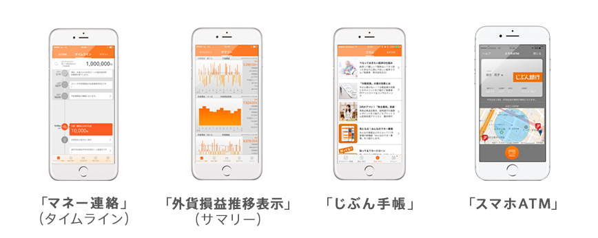 株式会社じぶん銀行(本社:東京都中央区、代表取締役社長:鶴我 明憲、以下「じぶん銀行」)は、スマホバンキングの抜本的レベルアップ第3弾として、2017年3月27日(月)に「じぶん銀行スマートフォンアプリ」(以下「当行スマホアプリ」)をバージョンアップし、口座振替金額や定期預金満期などの取引予定情報を、アプリの「タイムライン」上でお知らせする新機能「マネー連絡」や、外貨預金の最新の損益状況が一目でわかる機能など、各種新機能を追加しました。