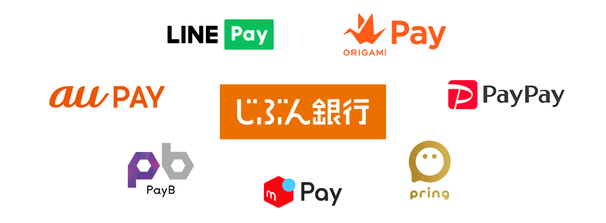 au PAY、LINE Pay、PayB、Origami Pay、メルペイ、pring、PayPay
