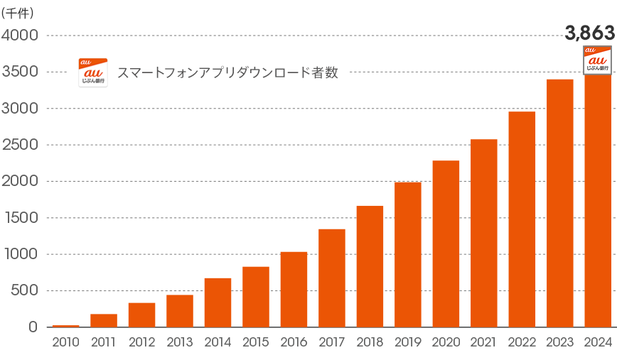 2010年以降のスマートフォンアプリダウンロード者数の推移を掲載しています。