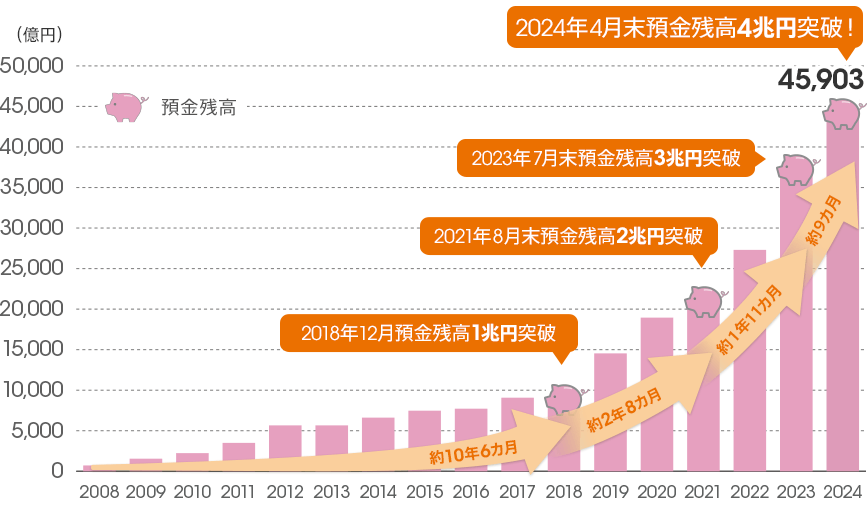 2023年7月には、預金残高が3兆円を突破いたしました。