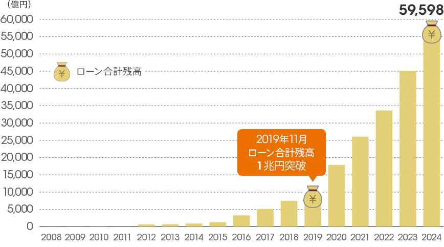 2019年11月には、ローン残高合計が1兆円を突破いたしました。