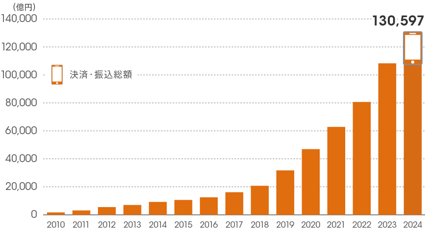2010年以降の各年度の決済・振込金額の推移を掲載しています。