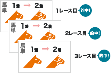 指定された3つのレースの馬単をすべて当てる馬券です。