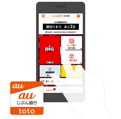 BIGセット購入はもちろん、BIG予約購入設定や当せん結果の確認もスマートに。