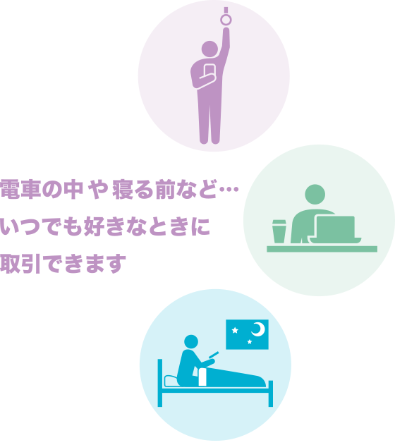 また、便利なFX専用スマホアプリをご用意しているので、通勤途中の電車やお昼休みなど、空いた時間を使って取引に参加することができます。