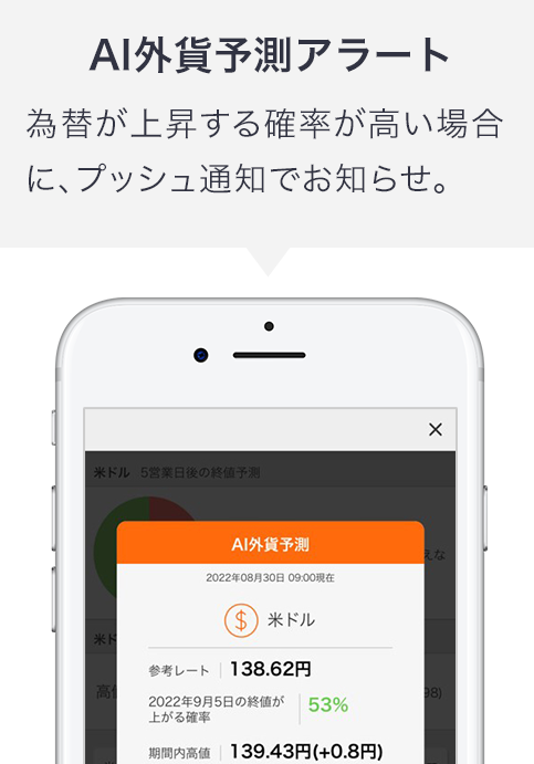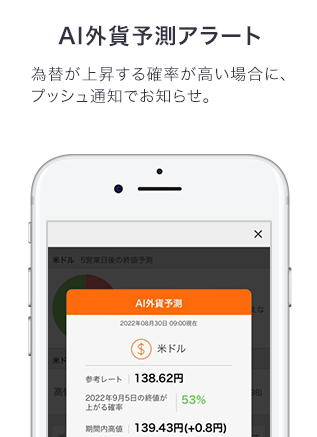 ご登録いただいたレートまで為替が到達した場合、プッシュ通知でお知らせするので、買いどき・売りどきを逃しません。