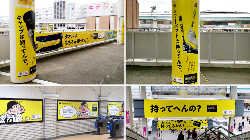 甲子園駅のホーム壁面や改札道路など合計20カ所に、阪神タイガースにちなんだ広告を掲載中です!電車を降りた瞬間から改札を出るまで、阪神タイガースを応援する気持ちを高めていただける内容となっております。
