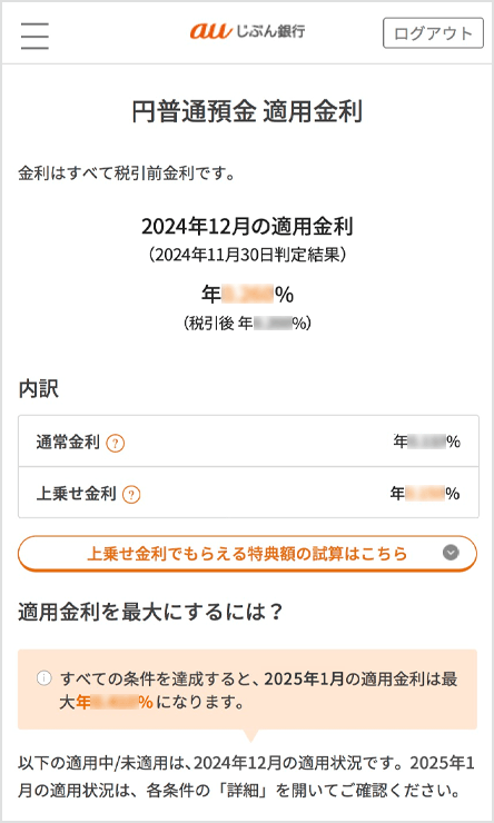 • 2025年6月3日より「auマネ活プラン金利優遇」「auマネ活プラン+金利優遇」を含めて特典名を一本化しました。特典内容・条件等に変更はありません。
