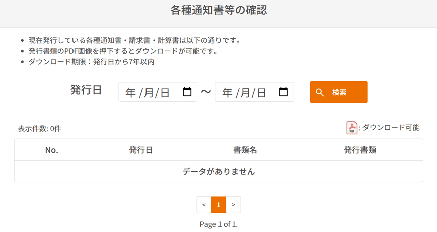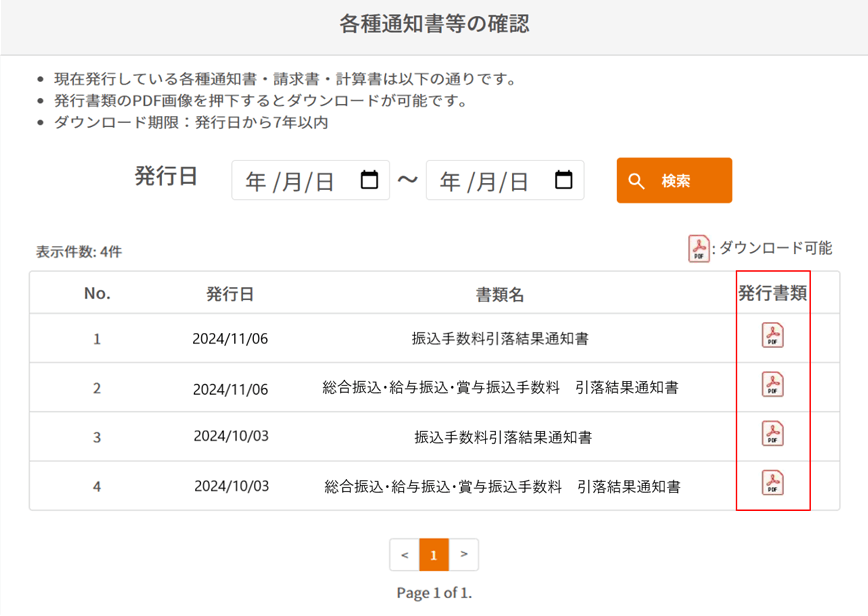 ①�ʒm���������s����Ă���ꍇ�́A���s���ނ�PDF�A�C�R���������ƁA�e��ʒm�������_�E�����[�h�ł��܂��B