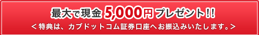 ※特典は、カブドットコム証券の証券口座へお振込みいたします。