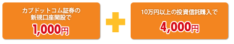 特典②:口座開設の翌々月末までに10万円以上の投資信託購入で、『現金4,000円』プレゼント