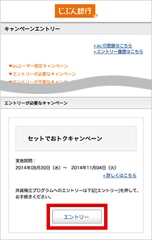 ご希望のキャンペーンを選んで、エントリーボタンを押す