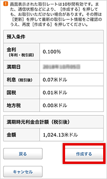 預入金額を円、また外貨で入力し、[預入期間]、[満期日取扱い]を選択