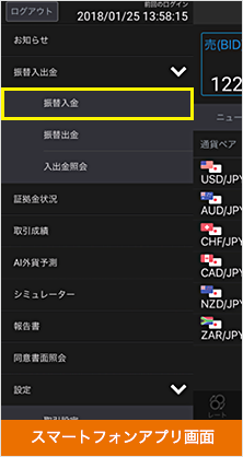メニューから[振替入金]を押す