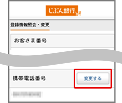 3.携帯電話番号が表示されていない場合や、現在のものと異なる場合、変更するボタンを押して変更する