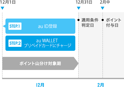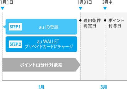 - ポイント付与時点でauのご契約回線およびau WALLET プリペイドカードまたはじぶん銀行口座の解約など、条件を満たしていない場合は対象外です。
