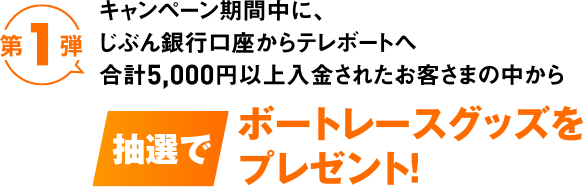 - 対象期間中に、当行口座よりテレボートへ合計5,000円以上入金していただくこと