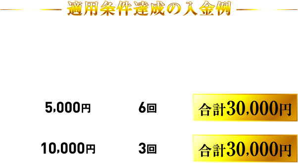 対象期間中に、当行口座よりテレボートへ合計30,000円以上入金していただくこと