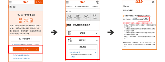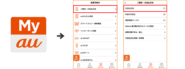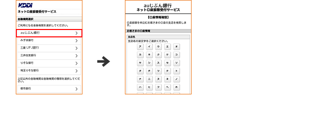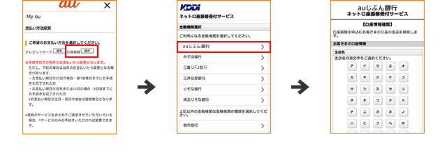 au ご利用料金のお支払口座(お引落とし口座)設定方法