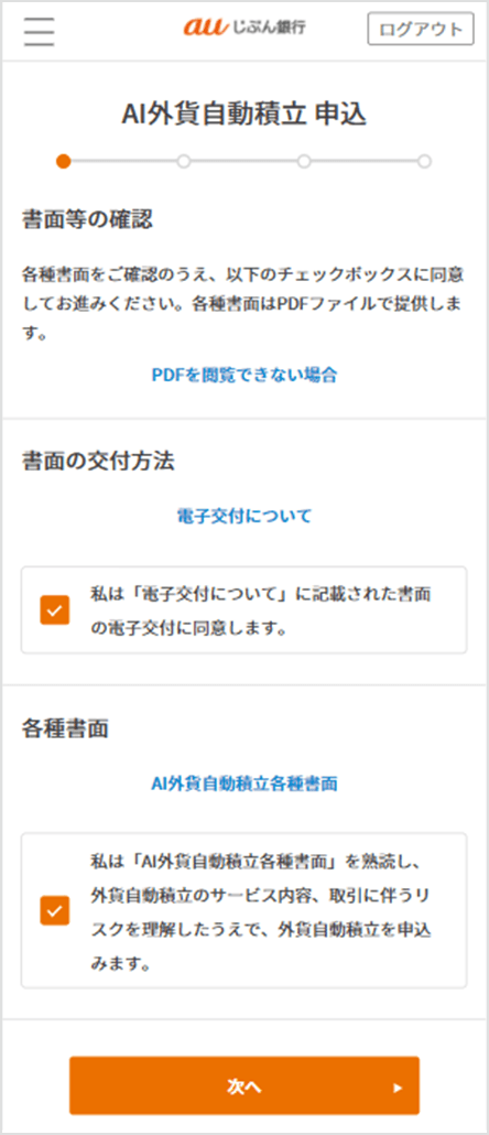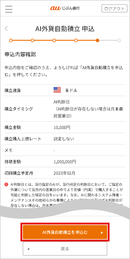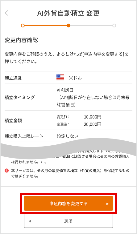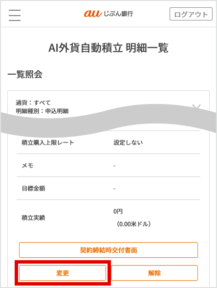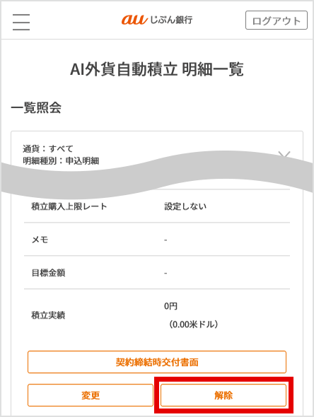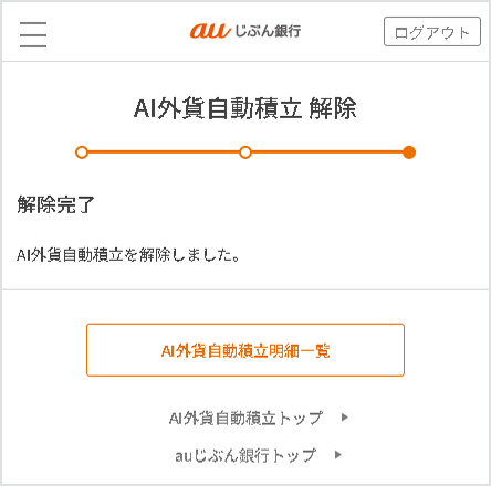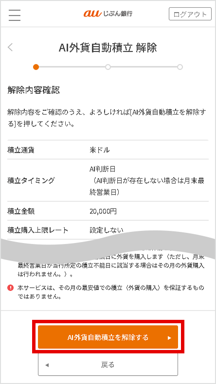 解除内容を確認し、[AI外貨自動積立を解除する]を選択