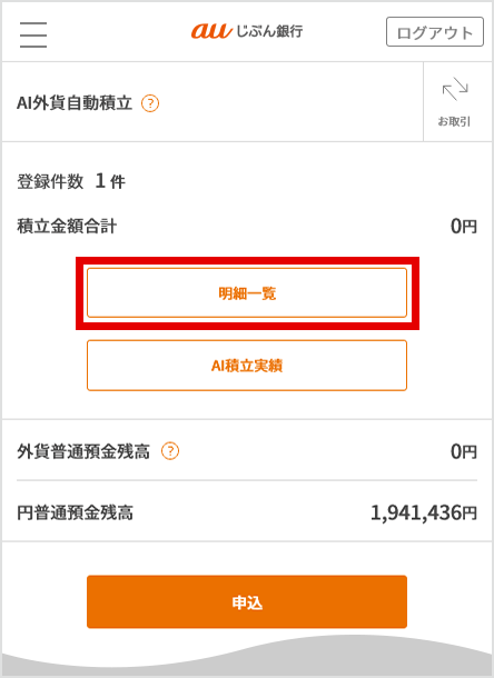解除内容を確認し、[AI外貨自動積立を解除する]を選択