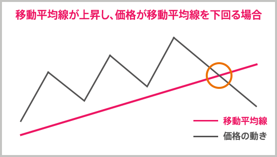 「支持線」として期待されていた移動平均線を価格が割り込んでしまうと、「もっと下がるかもしれない」という不安感が強まり、一気に下がる可能性があります。