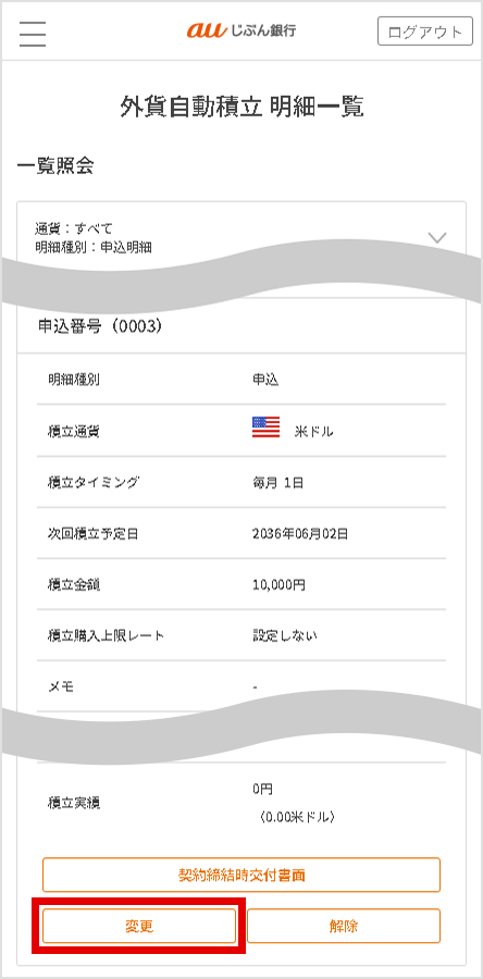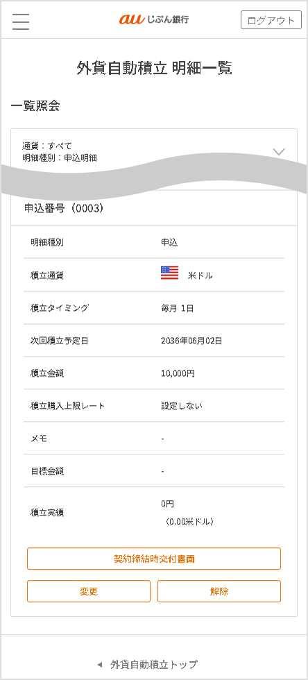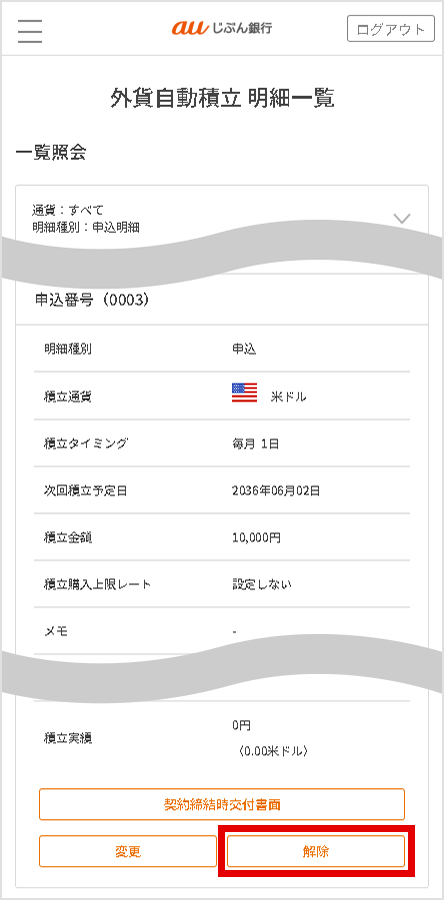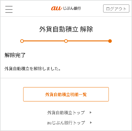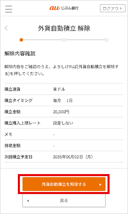 解除内容を確認し、[外貨自動積立を解除する]を選択