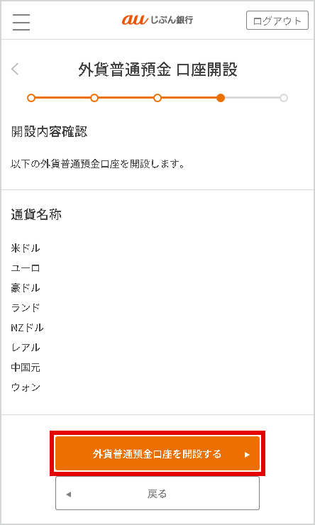 [外貨預金口座を開設する]を選択