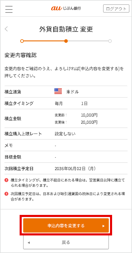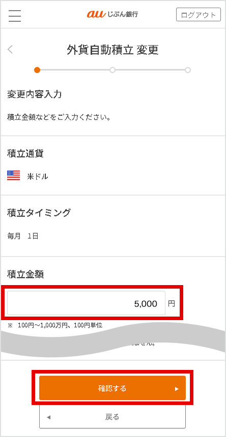 変更したい積立金額等入力し、[確認する]を選択