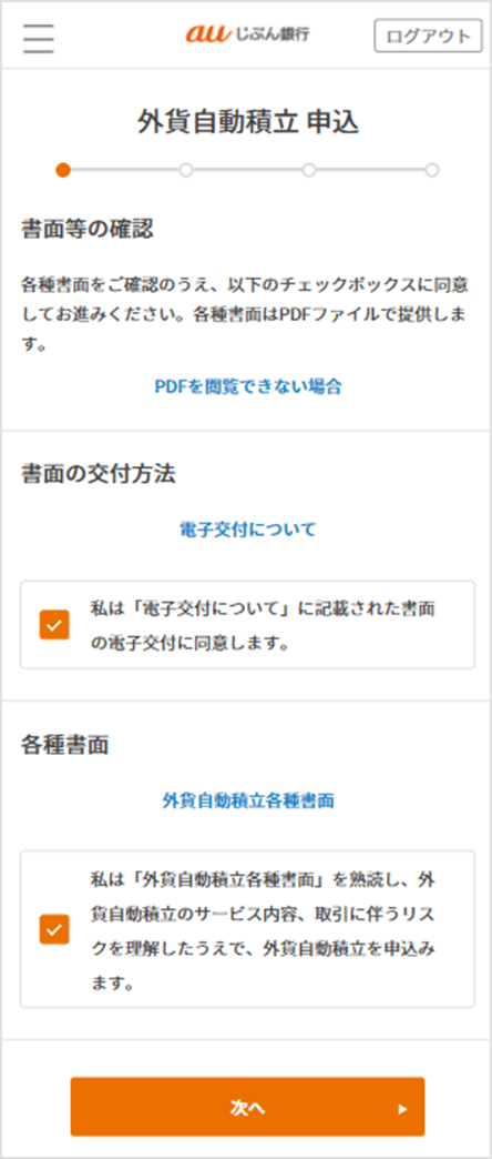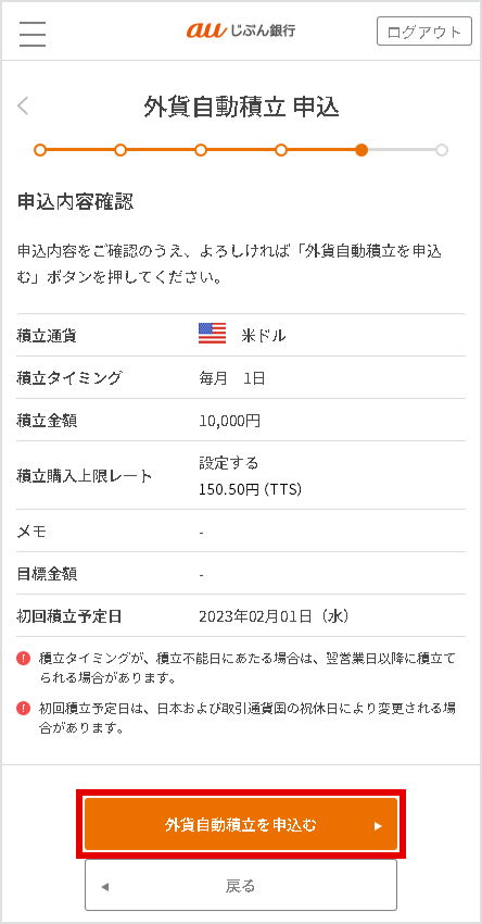 詳細を確認して、[外貨積立を申込む]を選択