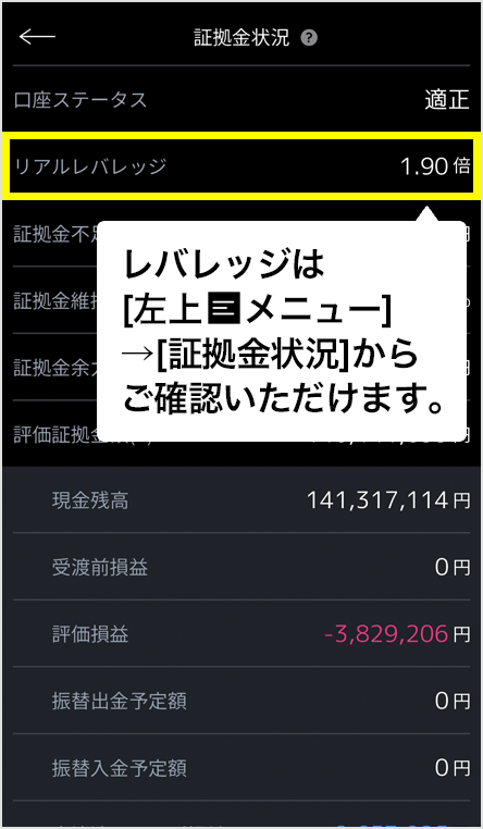 証拠金額とお取引する取引額の組合わせに応じて、最大25倍(注文時は最大20倍)までの取引が可能です。