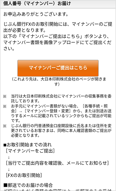 マイナンバー制度開始以前(2015年12月31日)より「じぶん銀行FX」口座をお持ちのお客さまも個人番号(マイナンバー)のご提出が必要となっております(経過措置先対応)。