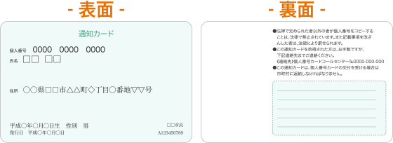 券面には氏名・住所・生年月日・性別と個人番号(マイナンバー)が記載されています。