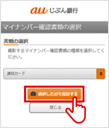 提出する書類種類を入力し、[選択したので撮影する]を選択