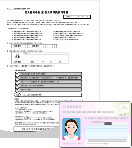 - ※「個人番号カード(マイナンバーカード)」以外の個人番号(マイナンバー)書類をご提出の場合、ご登録内容の確認ができる「本人確認書類」のご提出が必要です。