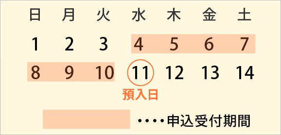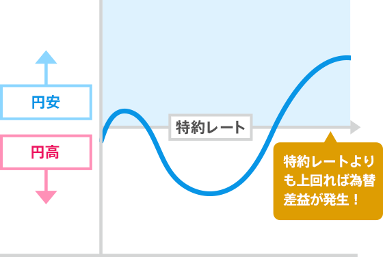 預入日の実績為替レートを元に、特約レートを設定しますので、募集締切日に近い日にお申込みいただくと、より特約レートの予想がつきやすい商品です。