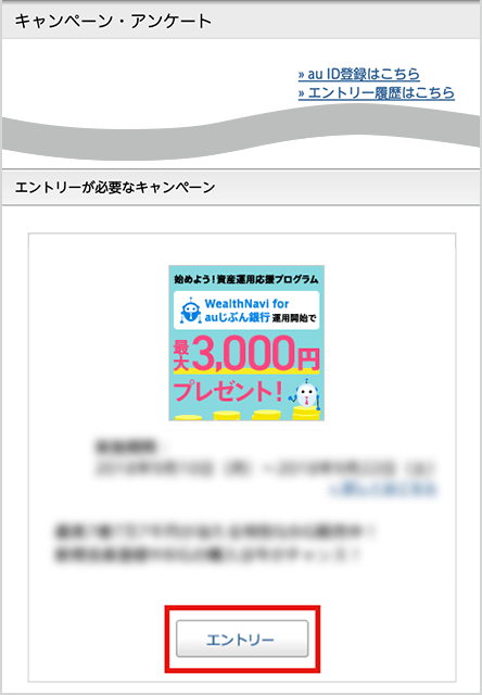 「始めよう!資産運用応援プログラム」を選んで、エントリーボタンを押す