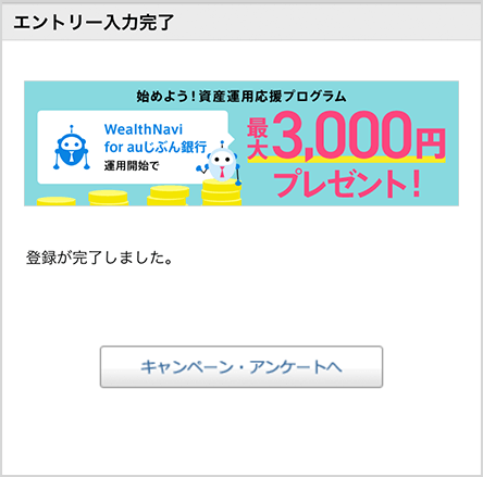 対象期間:「WealthNavi for auじぶん銀行」で、はじめて運用開始した日から翌々月末まで
