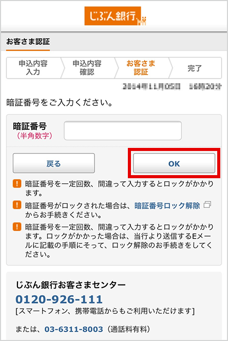 暗証番号を入力したら、お申込完了です