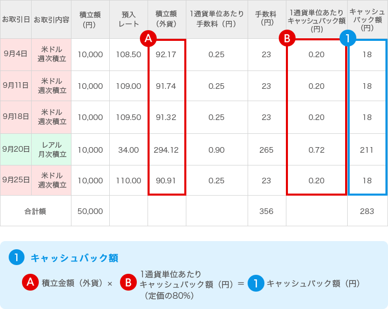 - ※キャッシュバック割合は、全通貨の積立額を合計した金額で判定します。
