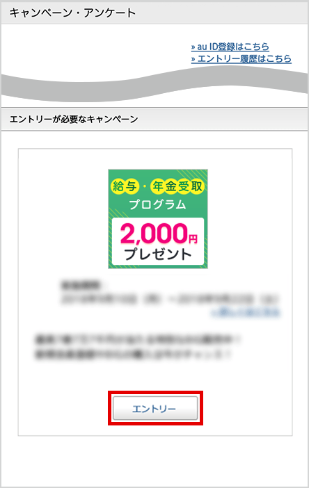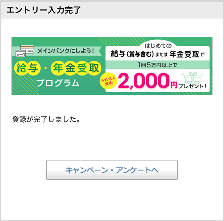 本ページ内のエントリーボタンを押してログイン後、「給与・年金受取プログラム」を選んでエントリーボタンを押す