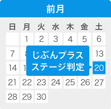 特典対象月の前月20日時点でじぶんプラスステージを判定します。
