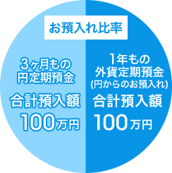 「3ヶ月もの円定期預金合計預入額:100万円」、「1年もの外貨定期預金(円からのお預入れ)合計預入額:100万円」の場合