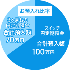 「3ヶ月もの円定期預金合計預入額:70万円」、「スイッチ円定期預金合計預入額:100万円」の場合