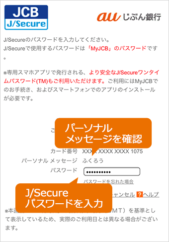 じぶん銀行スマホデビットは、本人認証サービス「J/Secure」に対応しています。