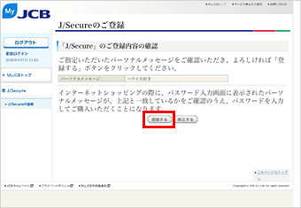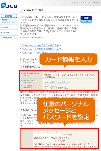 MyJCB > インターネットショッピングでの本人認証サービス > J/Secureのご登録
